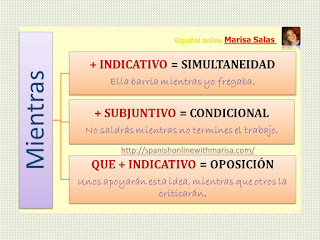 La palabra mientras tiene diferentes usos si se combina con Indicativo o Subjuntivo. Mira la imagen y saldrás de dudas.